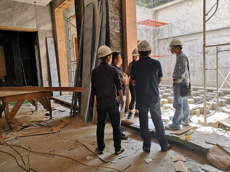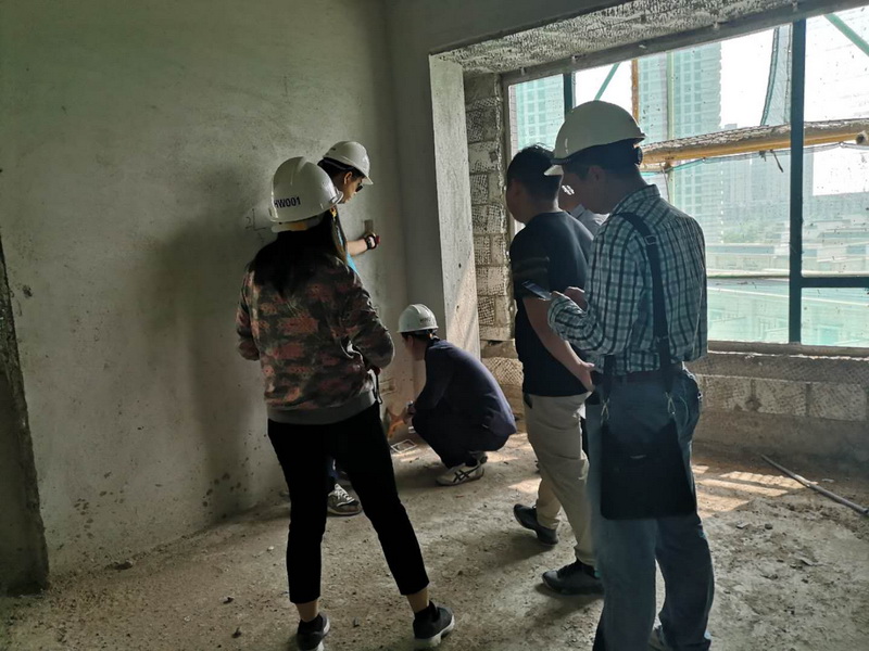 總裁助理楊洪??値ьI建筑、室內、機電等各專業(yè)設計人員同行,進行現場巡檢。力求加強對各項目執(zhí)行管理的監(jiān)管力度,全面了解各在建項目的實際情況。