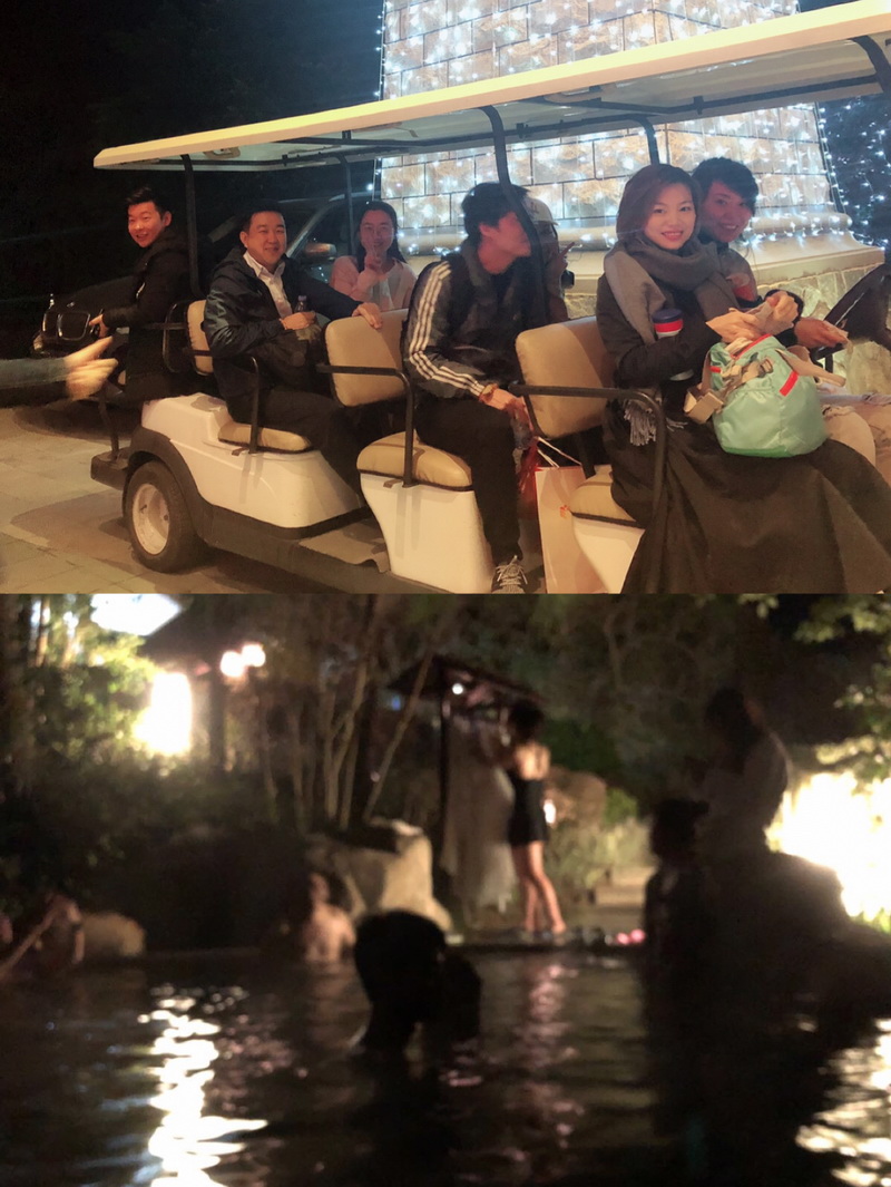 歷經(jīng)兩個半小時的車程,終于抵達(dá)目的地??粗徊薀粞b飾的燈火通明的酒店,想著熱氣騰騰的溫泉。也早已拋開長時間車程帶來的疲憊。換好行裝,結(jié)伴前往各式各樣的溫泉池:牛奶池、玫瑰池、紅酒池、親親魚療池……走在鵝卵石鋪好的小路,穿梭于綠樹從間,大家享受著屬于夜間的寧靜與愉悅。