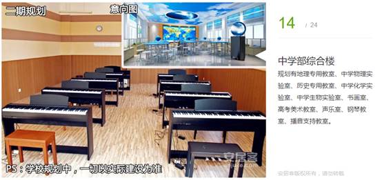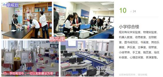 規(guī)劃有化學(xué)實(shí)驗(yàn)室、物理實(shí)驗(yàn)室、機(jī)器人教室、信息教室、生物教室、圖書閱覽區(qū)、書畫室、其他樂(lè)器室、聲樂(lè)室、古箏室、鋼琴室、小練琴房、手工室、陶藝室、培優(yōu)補(bǔ)弱室、心理咨詢室、表演室等。