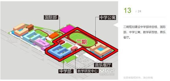 二期規(guī)劃建設(shè)中學(xué)部綜合樓、國(guó)際部、中學(xué)公寓、教學(xué)研發(fā)樓、音樂(lè)餐廳。