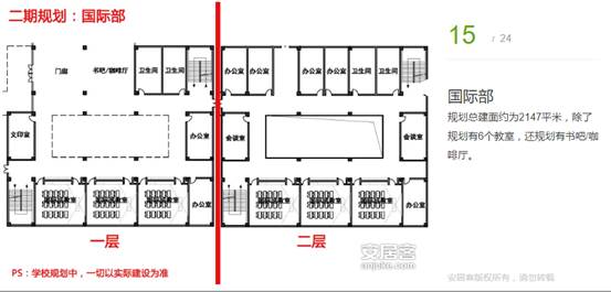 規(guī)劃總建面約為2147平米,除了規(guī)劃有6個(gè)教室,還規(guī)劃有書吧/咖啡廳。
