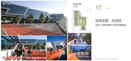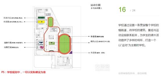 學(xué)校通過(guò)設(shè)置一條貫穿整個(gè)學(xué)校的慢跑道,將學(xué)校的建筑、景觀與運(yùn)動(dòng)設(shè)施聯(lián)系起來(lái),為學(xué)生的課外活動(dòng)提供了多樣的場(chǎng)所,打造一個(gè)以“運(yùn)動(dòng)”為主題的學(xué)校。