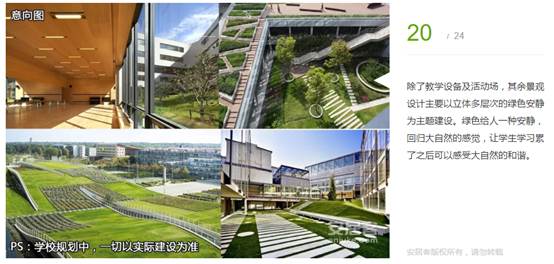 除了教學(xué)設(shè)備及活動(dòng)場(chǎng),其余景觀設(shè)計(jì)主要以立體多層次的綠色安靜為主題建設(shè)。綠色給人一種安靜,回歸大自然的感覺(jué),讓學(xué)生學(xué)習(xí)累了之后可以感受大自然的和諧。
