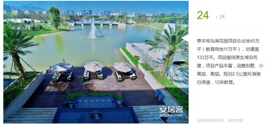 泰豐牧馬湖花園項(xiàng)目總占地45萬(wàn)平(教育用地11萬(wàn)平),總建面133萬(wàn)平。項(xiàng)目圍繞原生湖泊而建,項(xiàng)目產(chǎn)品豐富,涵蓋別墅、小高層、高層。規(guī)劃2.5公里環(huán)湖騎行綠道,12年教育。